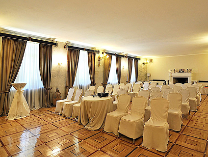 - ოთკუთხედი მაგიდები: 120 სტუმარი